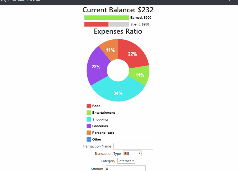 Close ProjectThis is a financial tracker web application that uses a model-view-controller design. The API handles account management as adding transactions. The app uses React.js to display dynamic views that show visualizations of transaction data. The app uses MongoDB for the database and Redis for handling tokens and authentication.