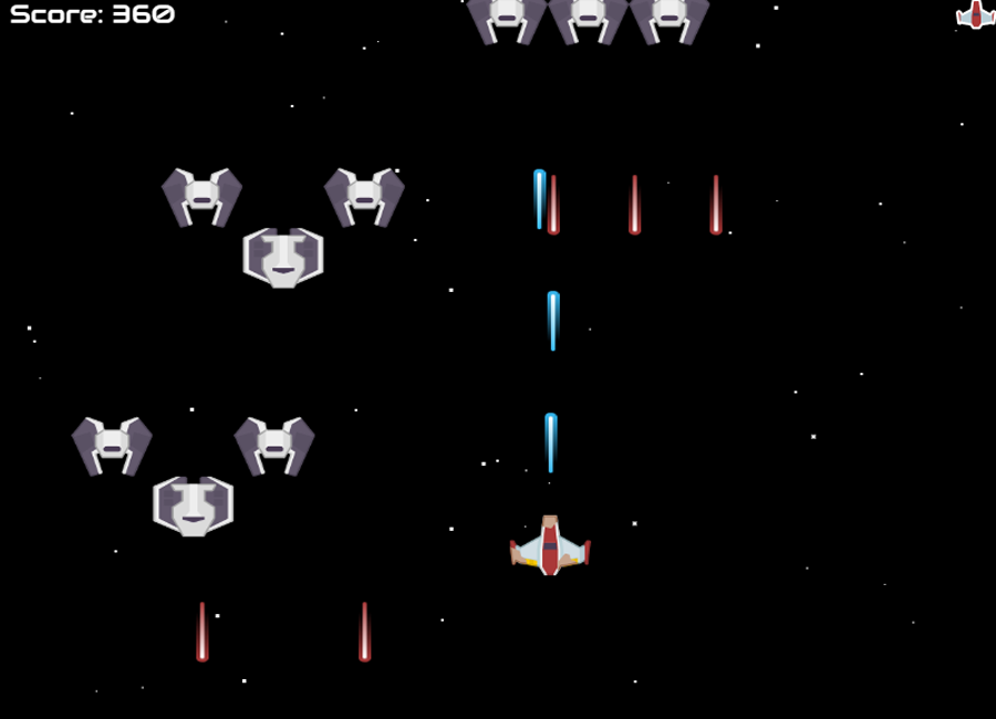 Space Blaster is a 2D shmup game. It was made in JavaScript as a web app and uses a module design pattern. It also uses the HTML5 canvas element for graphics.